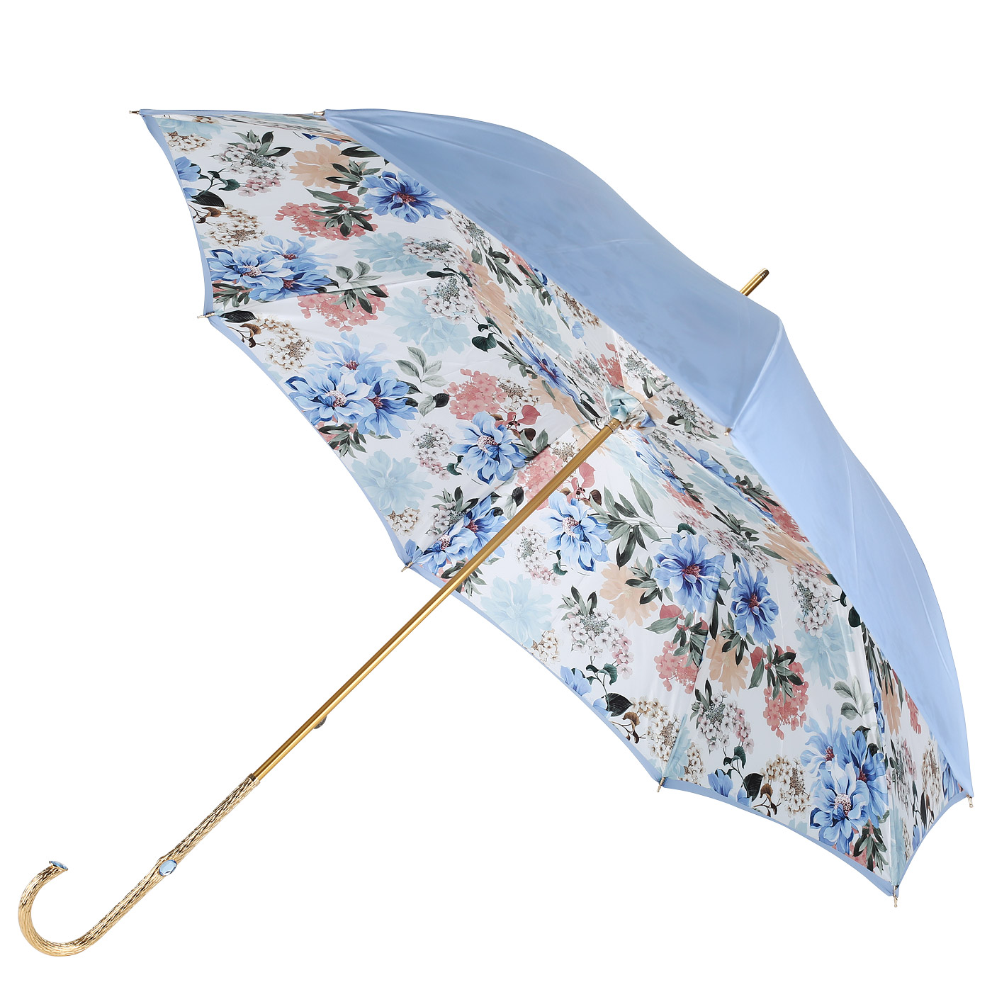 Механический зонт-трость Pasotti 189-P5_pc - 2000558271875 голубой текстиль Цена 28480 руб. купить в интернет-магазине PanChemodan.ru в Тюмени