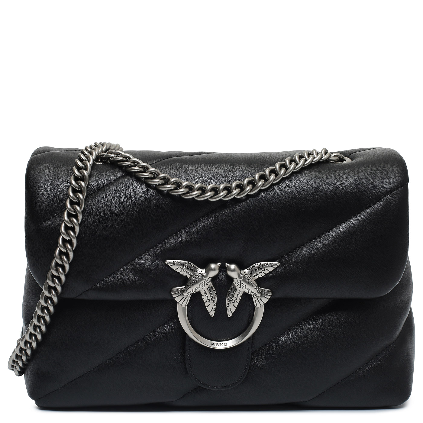 Сумка через плечо с цепочкой Pinko Love Puff 100038-A0F2/Z99O_black - 2000558611916 черный натуральная кожа 28 x 18 x 10 Цена 53120 руб. купить в интернет-магазине PanChemodan.ru в Тюмени