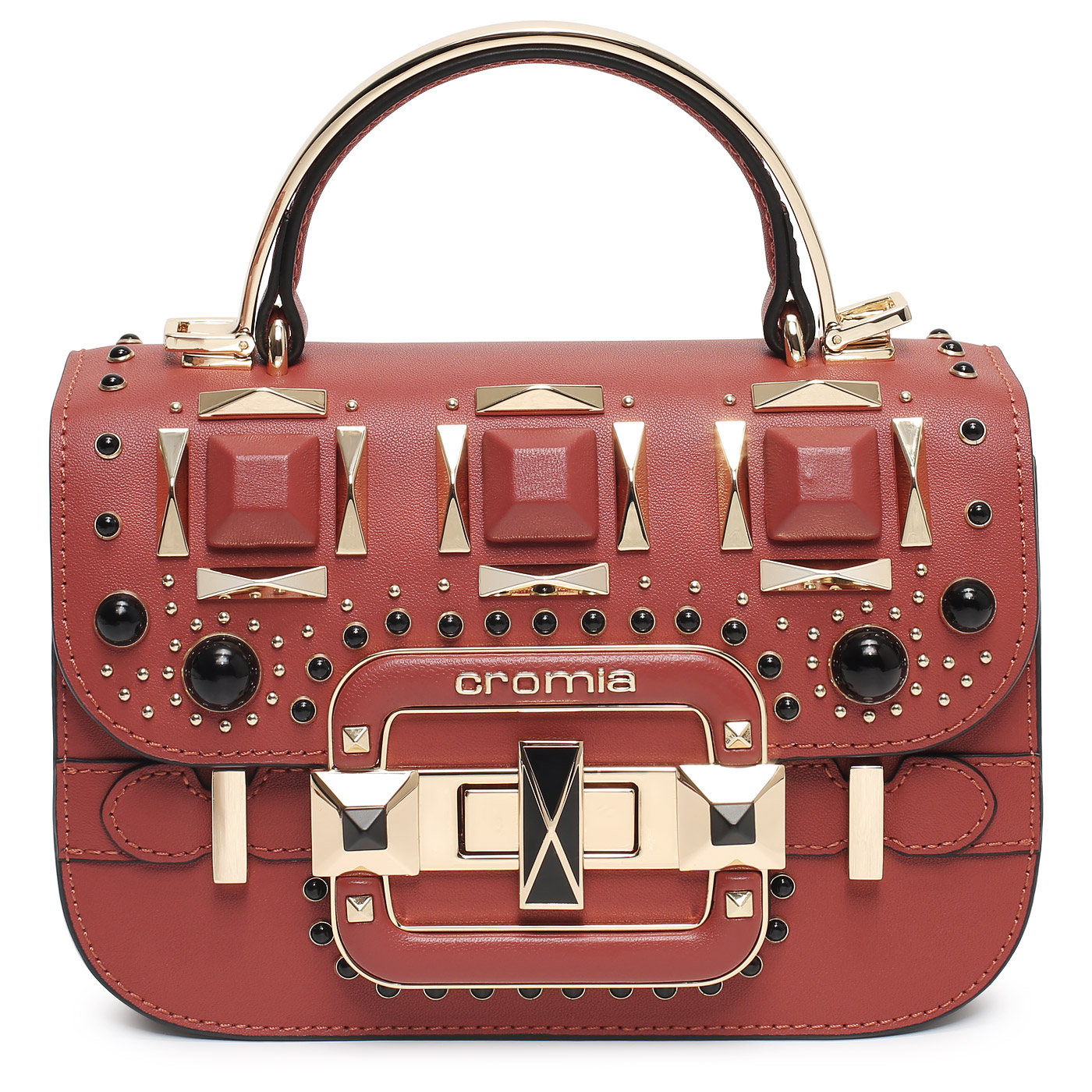 Кожаная сумка с клепками Cromia It Carrie 1405789_mattone_pc - 2000558718462 красный натуральная кожа 18,5 x 12,5 x 9 Цена 29246 руб. купить в интернет-магазине PanChemodan.ru в Омске